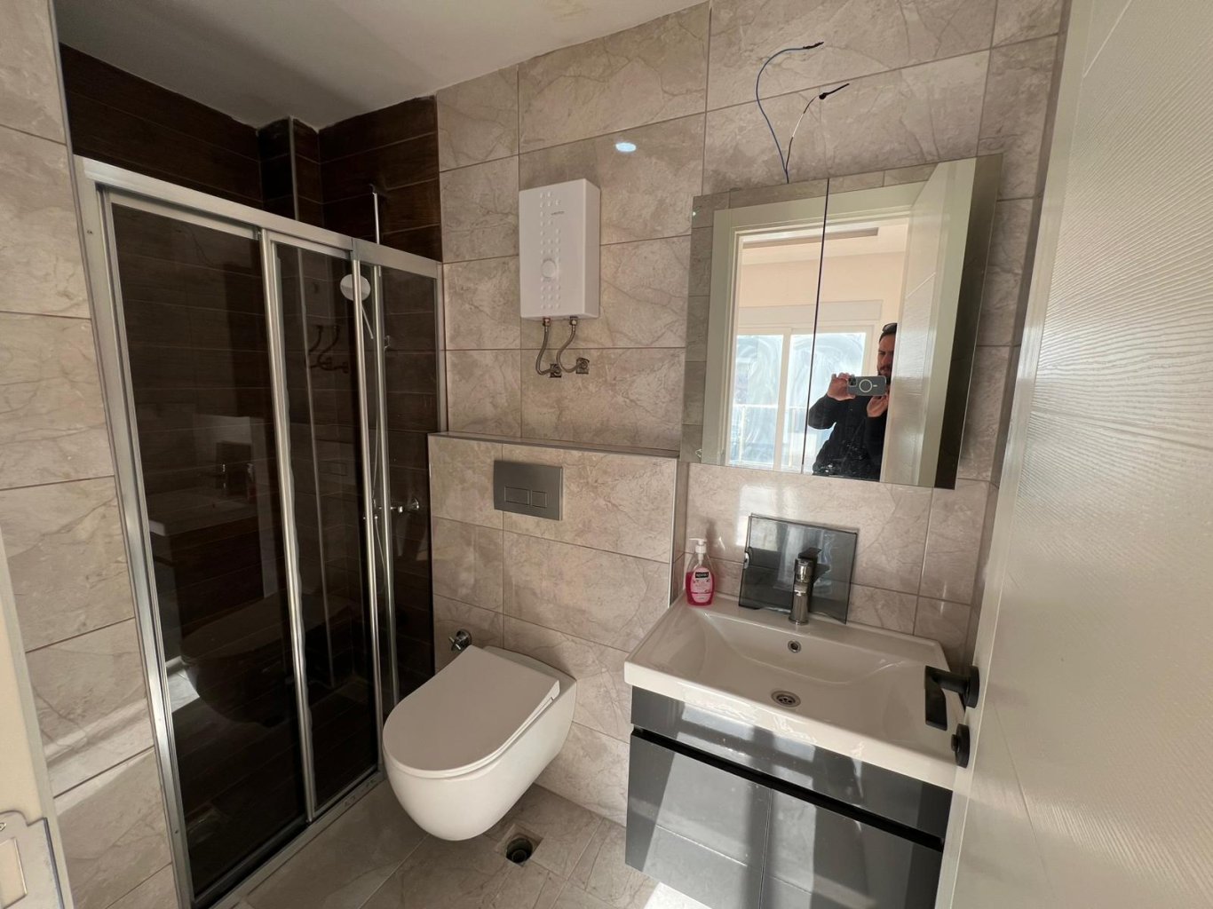 Комплекс предлагает комфорт и удобство для жителей: открытый бассейн, генератор для бесперебойного снабжения электроэнергией и низкую ежемесячную айдат — всего 500 TL. Расположение квартиры обеспечивает максимальное удобство: все необходимые магазины, кафе, рестораны, аптеки и банки находятся в пешей доступности, а до пляжа можно дойти всего за несколько минут.