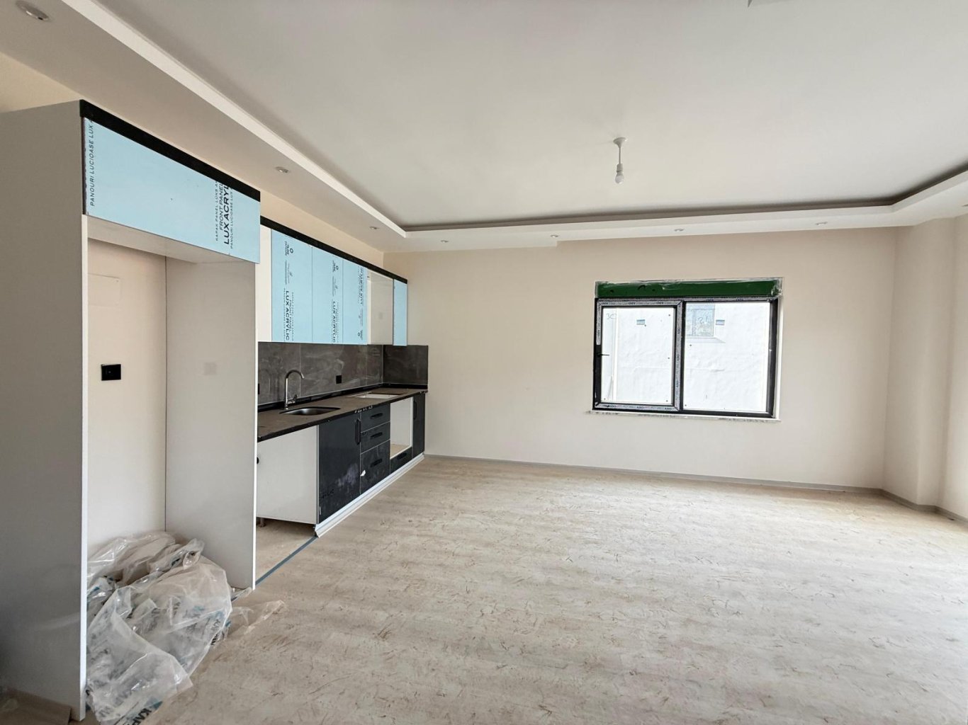 Квартира без мебели — отличная возможность создать интерьер по своему вкусу. Удобная планировка включает гостиную с кухней открытого типа, отдельную спальню, ванную комнату и балкон. Формат 1+1 идеально подойдёт для постоянного проживания, отдыха у моря или инвестиции с целью сдачи в аренду.