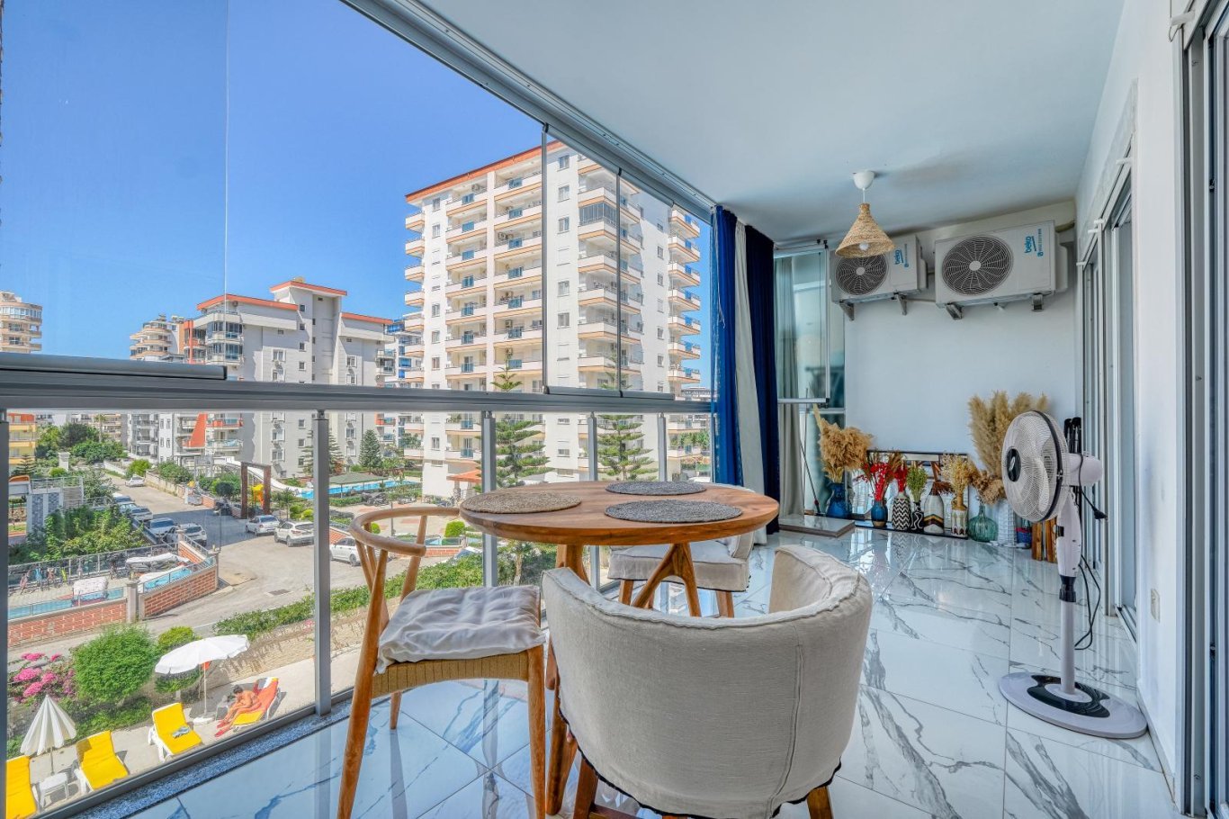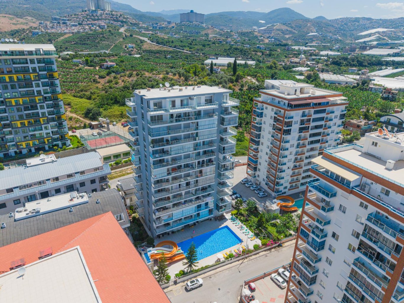 Комплекс располагает отличной инфраструктурой: крытый и открытый бассейны, турецкая баня и сауна, современный фитнес-центр, зона барбекю, лифт и генератор.