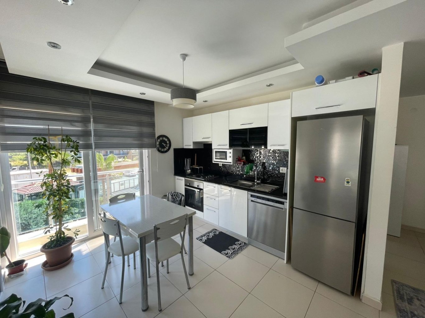 Квартира находится в современном жилом комплексе с развитой инфраструктурой: открытый бассейн с горками, крытый бассейн с подогревом, сауна, хамам, фитнес-зал, теннисный корт, детская площадка, зона барбекю, охрана 24/7 и генератор. До моря всего 800 метров, рядом магазины, кафе и остановки. Удобное расположение, высокое качество строительства и полная готовность к проживанию делают это предложение отличным выбором для жизни или аренды.