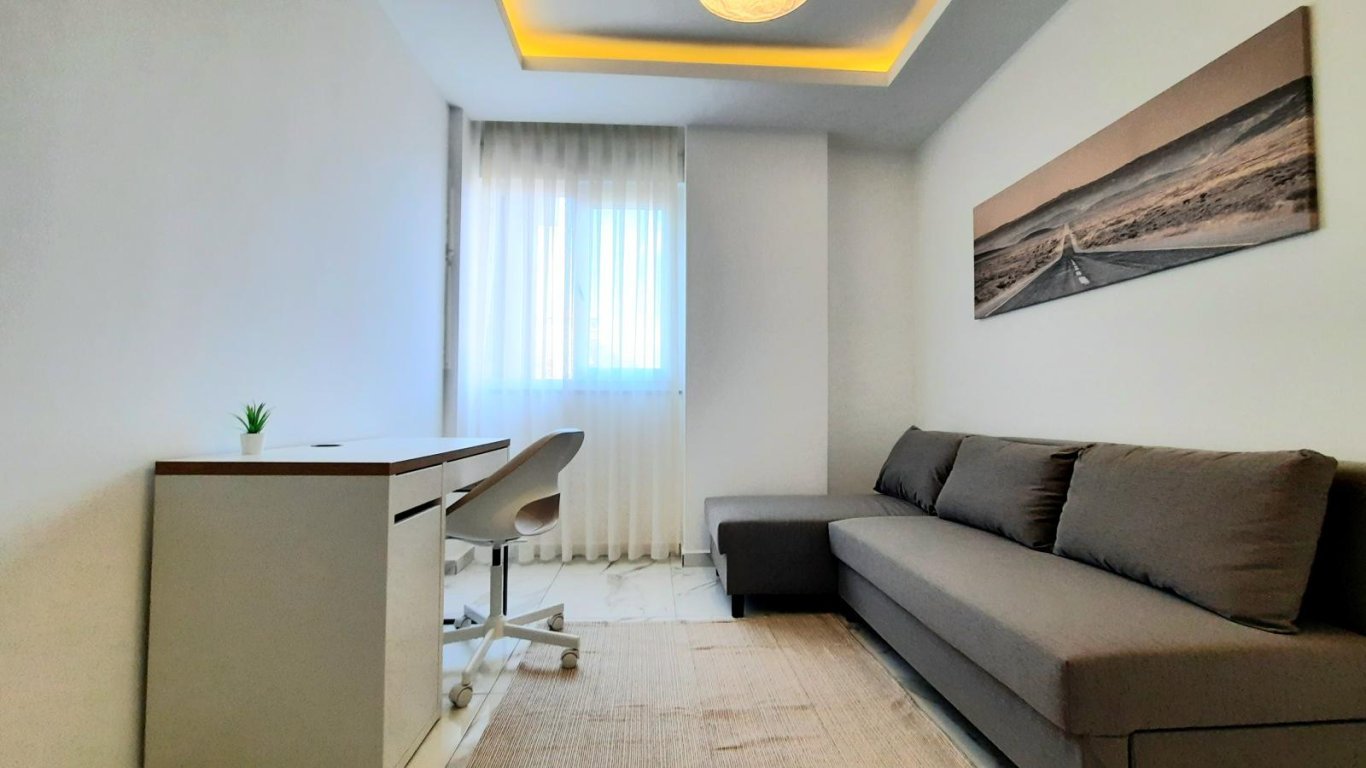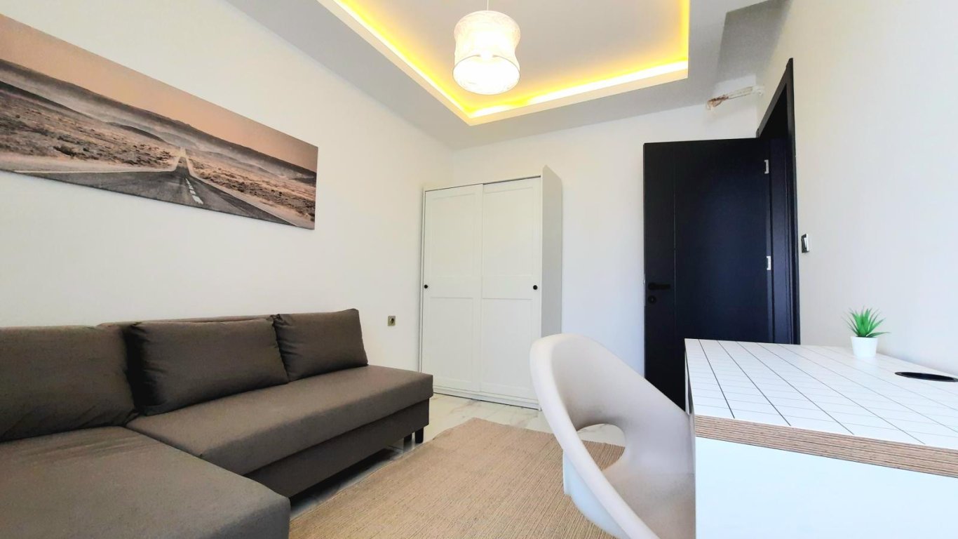 В квартире предусмотрены две уютные спальни, просторная гостиная с открытой кухней, современная ванная комната и два балкона, с которых открывается живописный вид на окрестности. Вся необходимая мебель и бытовая техника уже установлены, что позволяет сразу заехать и наслаждаться комфортом.