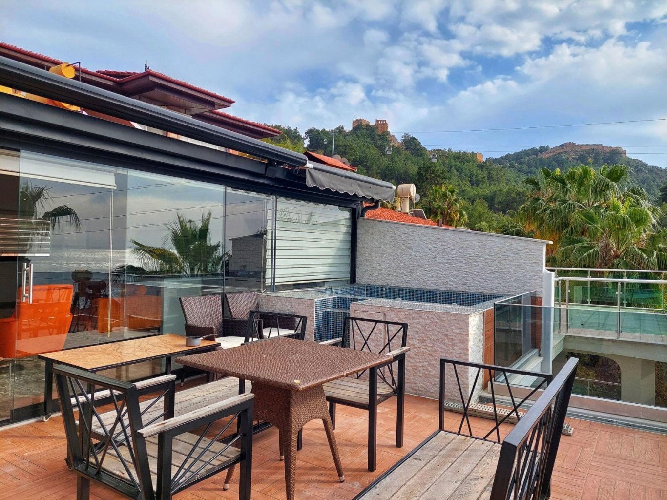 Большой балкон и просторная терраса подарят вам незабываемые моменты отдыха с видом на живописные пейзажи. Всего 5 минут пешком до легендарного пляжа Клеопатры и всего 500 метров до центра города, где сосредоточена вся инфраструктура, кафе и развлечения.