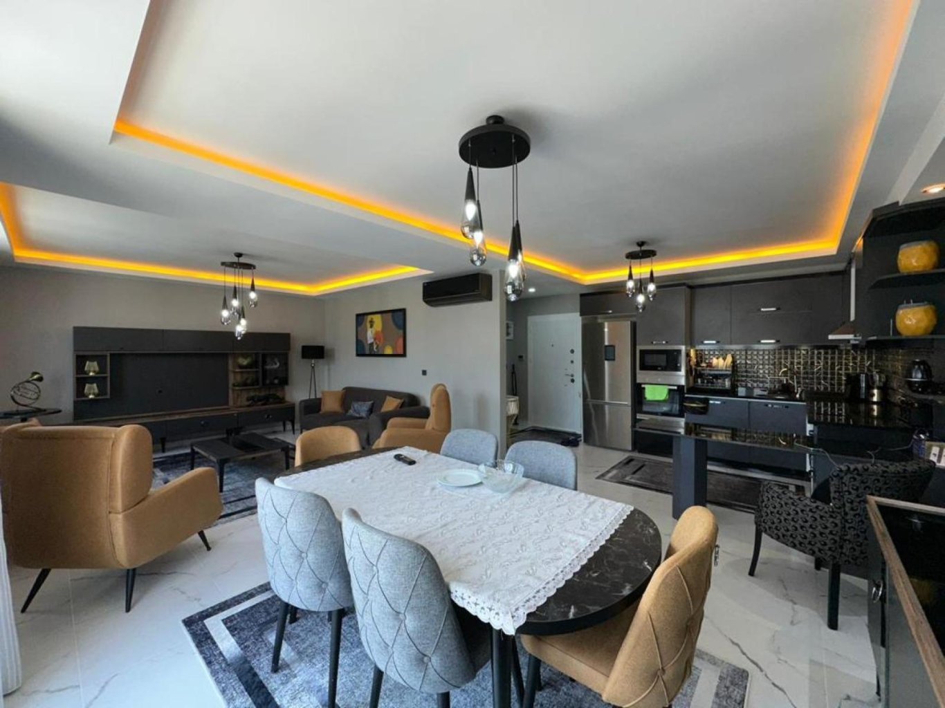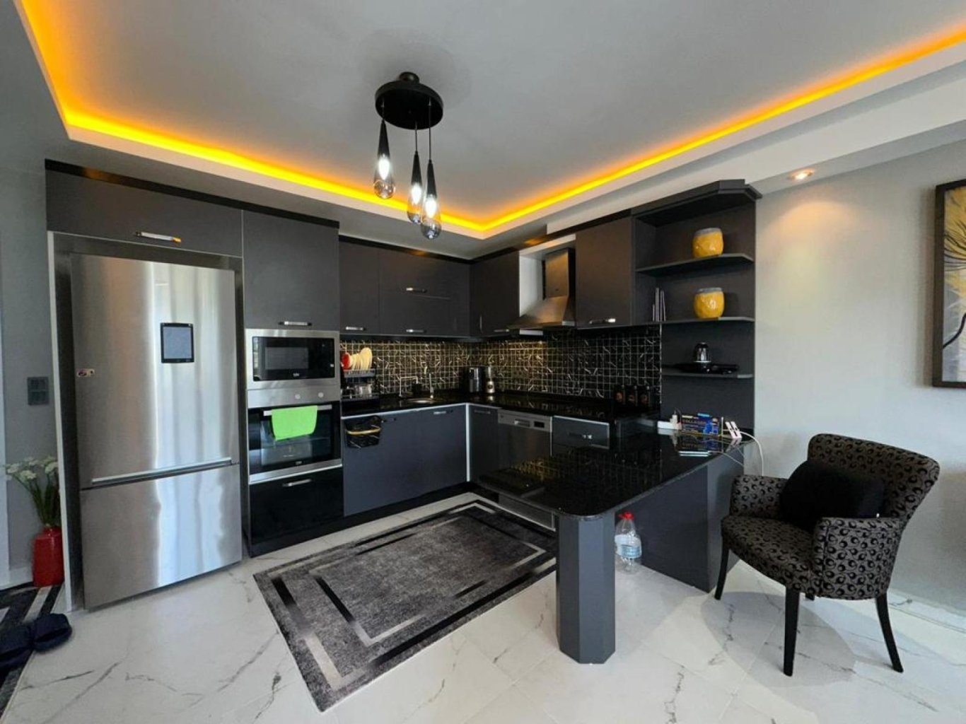 Эти апартаменты — идеальный выбор для тех, кто ценит комфорт и стиль жизни у моря. Просторная планировка дуплекса 3+1 прекрасно подходит как для семьи, так и для уютного отдыха. Качественный ремонт и полный комплект мебели позволяют сразу заехать и наслаждаться жизнью без лишних хлопот.