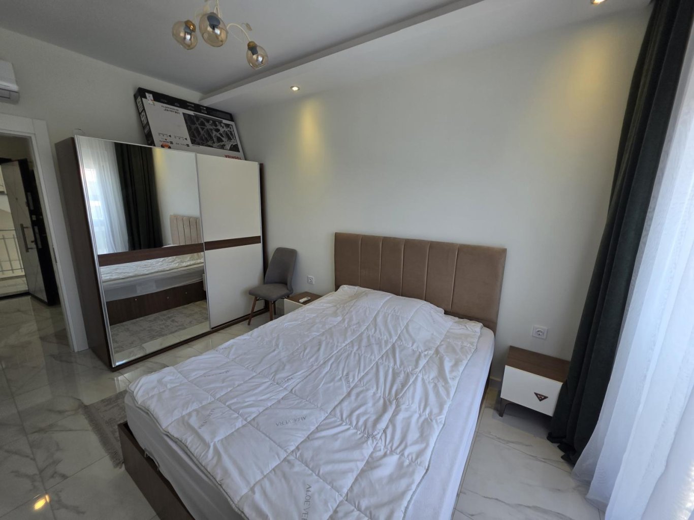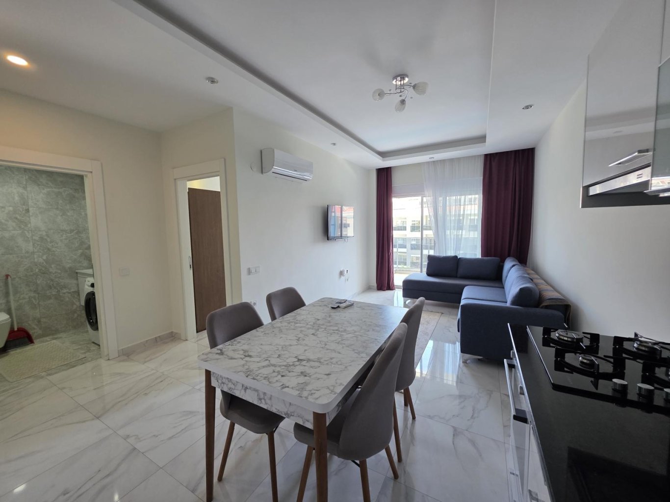 Продаётся уютная меблированная квартира 1+1 в престижном районе Кестель, Аланья. Общая площадь квартиры составляет 60 м², расположена она на 3-м этаже современного жилого комплекса, построенного в 2023 году. Светлая квартира с восточной ориентацией включает спальню, гостиную с американской кухней, современную ванную комнату и просторный балкон.