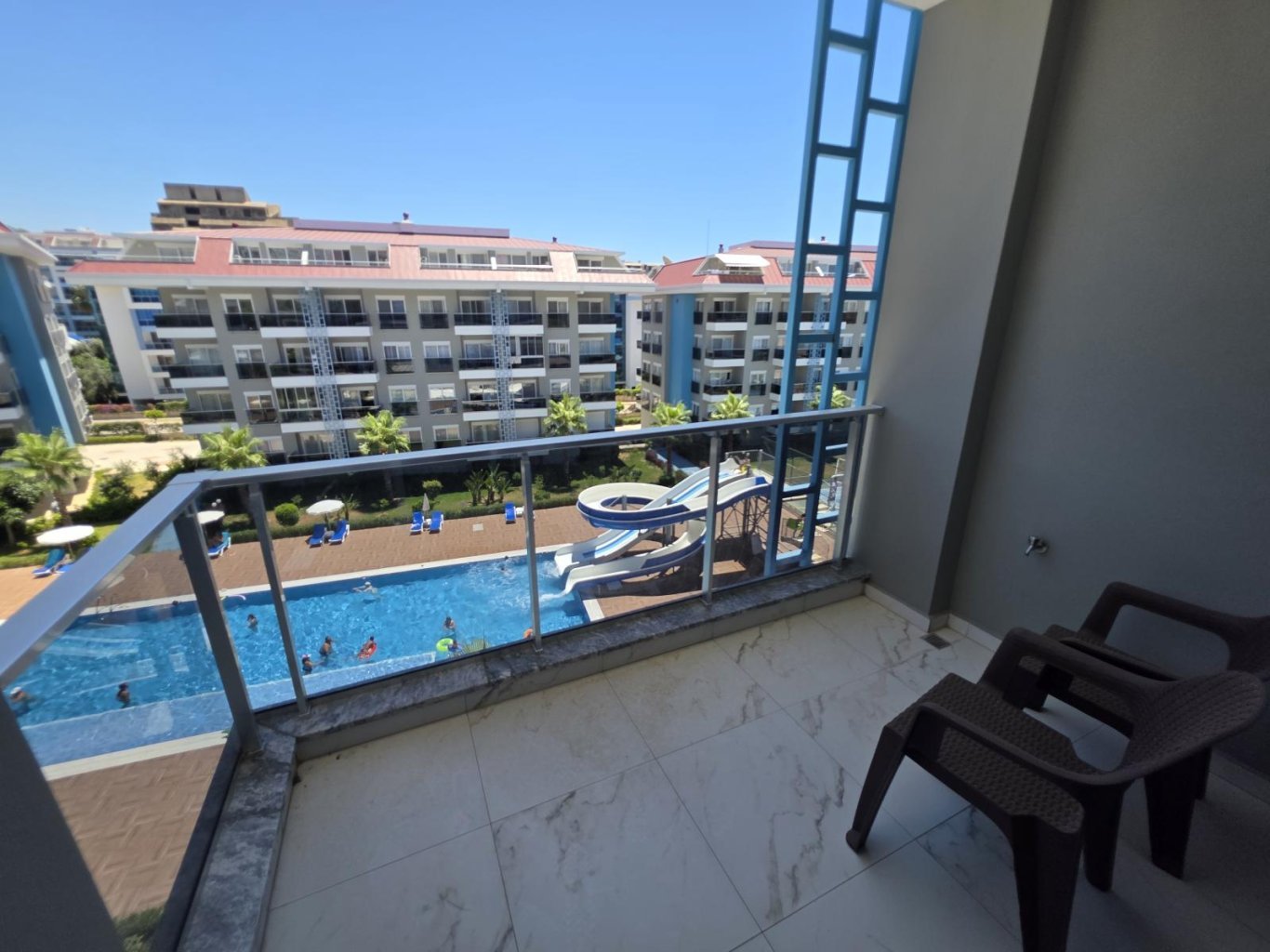 Комплекс предлагает богатую инфраструктуру для комфортной жизни: открытый и крытый бассейны, аквапарк, хамам, сауна, фитнес-зал, зона барбекю, круглосуточная охрана и видеонаблюдение. Для удобства жильцов работают два лифта, а также присутствует обслуживающий персонал.