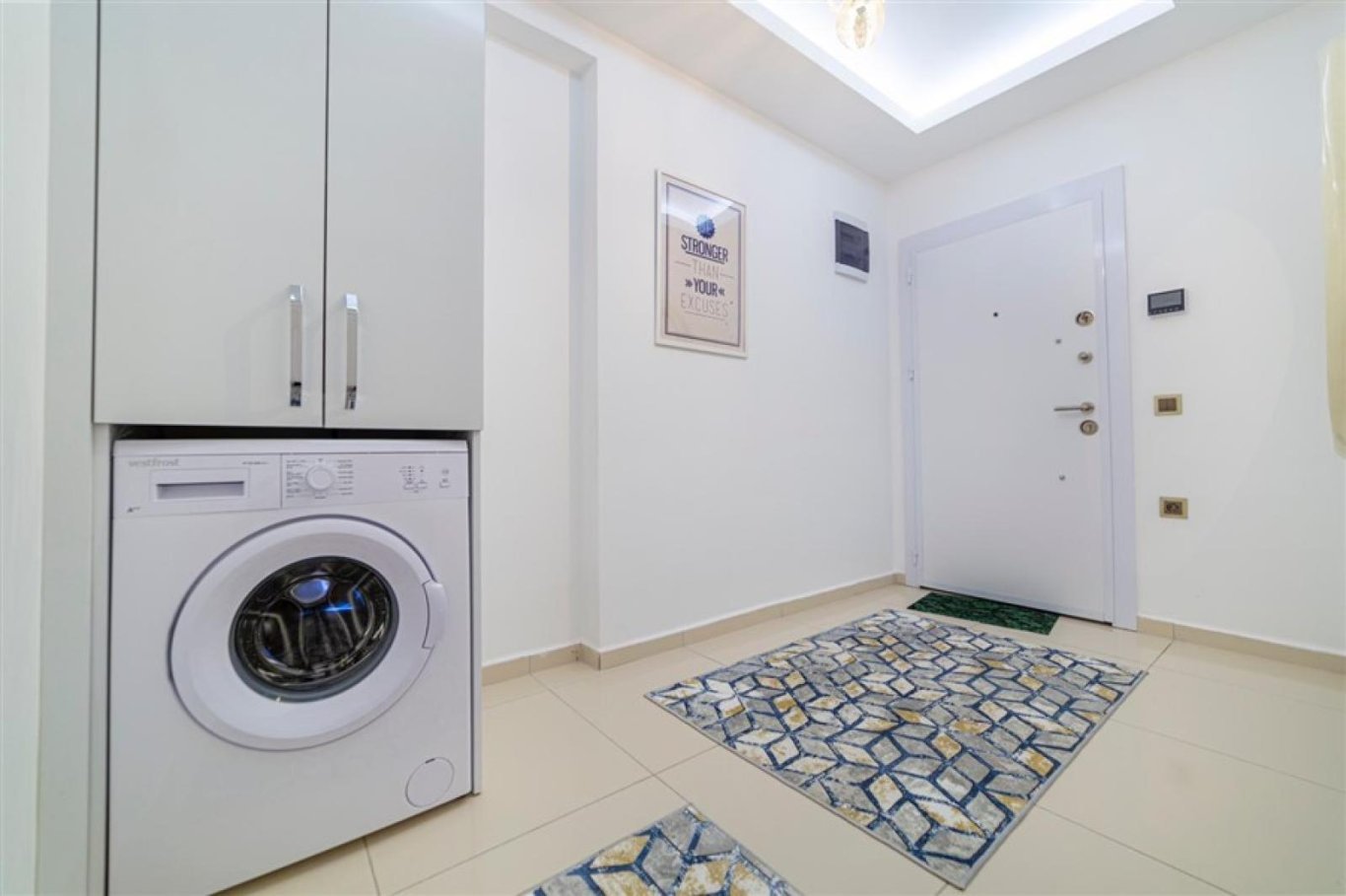 Продается стильная квартира 1+1 (70 м²) на третьем этаже в комплексе в Махмутларе, всего в 500 метрах от моря.