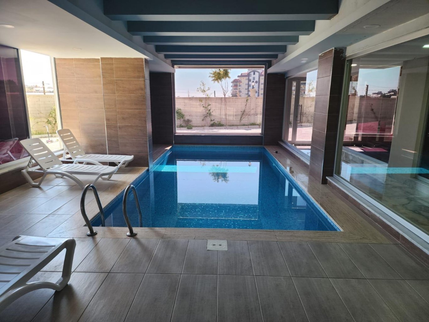 Инфраструктура комплекса включает открытый и крытый бассейн, сауну, ухоженный сад, зону барбекю на крыше, а также парковку и лифты. Территория закрытая и охраняемая, что обеспечивает дополнительное спокойствие и безопасность. В шаговой доступности — супермаркеты, кафе, аптеки, остановки транспорта. До центра Аланьи — 25 минут езды, до аэропорта Газипаша — около часа.
