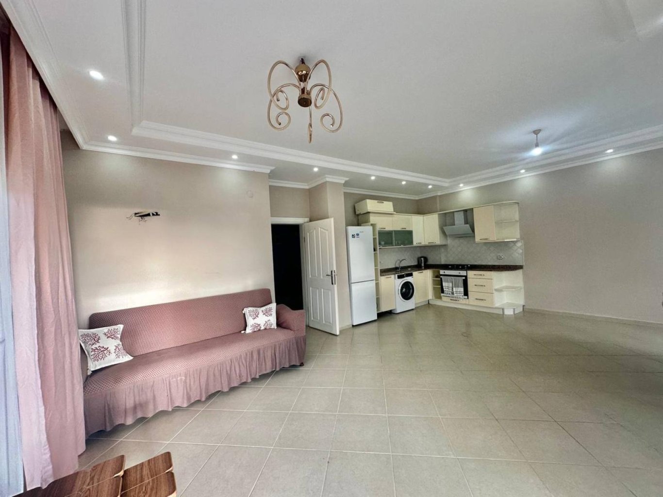 Планировка включает 2 уютные спальни, просторную гостиную с кухней открытого типа, 1 балкон, 1 ванная комната и 2 туалета. Квартира продаётся с полной мебелью и всей необходимой бытовой техникой — готова к заселению без дополнительных вложений.