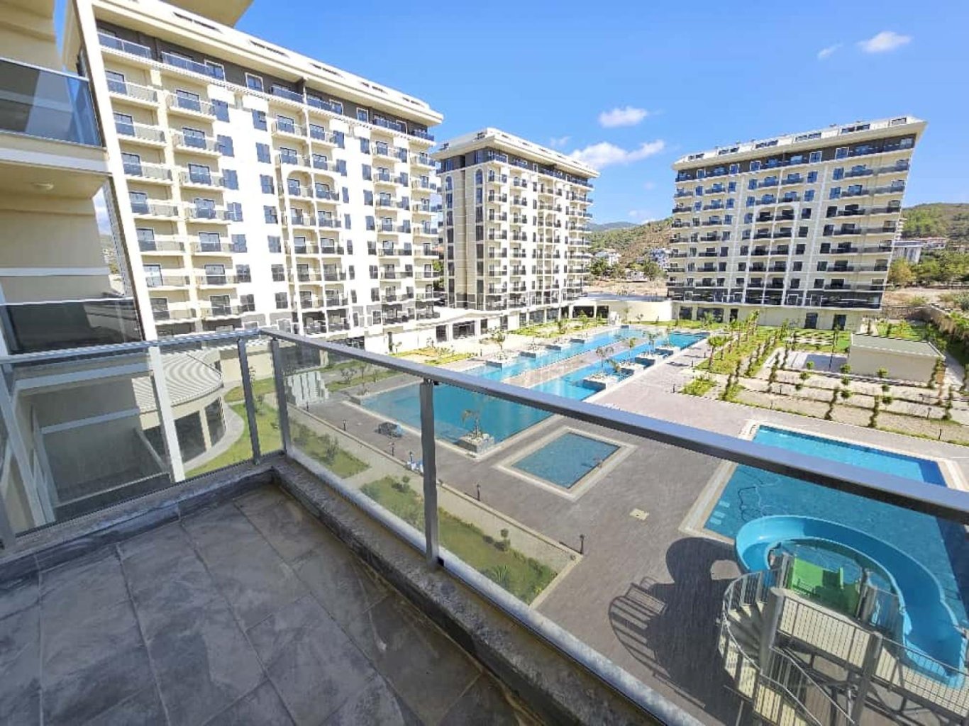 Завершение строительства: Тапу (собственность) уже получено. В данный момент завершается работа по созданию внутренней инфраструктуры. Комплекс состоит из 4 жилых блоков, с обширной территорией, включающей зеленые зоны и бассейны.